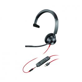 Wired mono headset with triple USB Type-C connection, USB-A adapter and 3.5 mm jack Mono headset with triple connection: 3.5" jack, USB-C/A SoundGuard™ hearing protection Adjustable ear cushions with passive noise cancellation Foldable for easy transport in its case Intuitive controls: answer/hang up, volume, mute Microphone with cancellation of noise cancellation Compatible with all Softphones