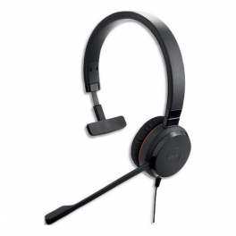 Jabra Evolve Corded Monaural PC model for mobile/tablet - with soft carry pouch Large, leatherette ear cushions and soft carry pouch included 3.5mm jack and USB connection Noise cancelling microphone and DSP technologies USB connection and compatible with Jabra PC suite Over-the-head wearing style with adjustable headband Discontinued Check the alternative product
