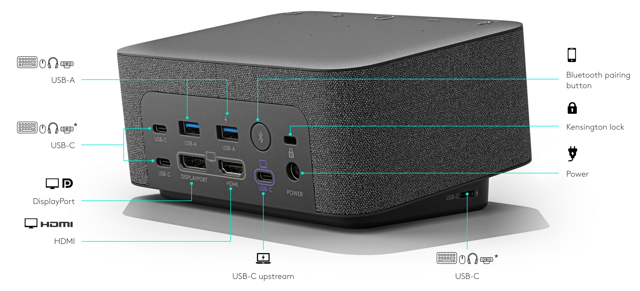 Logi Dock can also be paired with a smartphone or tablet via Bluetooth® to stream audio content.