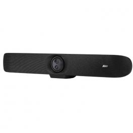 All-in-one video conferencing bar designed for large meeting rooms, featuring dual 4K cameras, AI framing functions, 360° stereo sound, and long-range microphones. Use: large meeting rooms Dual 4K camera: 180° rotating PTZ + 8.5 MP wide-angle lens 117° field of view and 12x optical zoom AI features: intelligent framing, auto gallery, voice and gesture tracking 6 beamforming microphones capturing voices up to 8 m away Powerful stereo sound (2 x 8W) BYOM/BYOD function: one-click sharing via wireless button Comprehensive connectivity: USB-C, HDMI, RJ45, Bluetooth 5.0 Flexible installation: includes wall mount and table stand