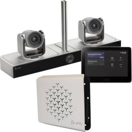 Videoconferencing solution for large rooms with 4K video bar, artificial intelligence and intuitive touch control. Video bar + tablet for large venues Plug & Play without a PC Dual 20MP sensors with 4K resolution Poly DirectorAI: intelligent framing of people and groups Long-range microphones: clear capture from up to 7.62 m Poly NoiseBlockAI & Acoustic Fence: noise suppression 10’ touchscreen tablet with single cable (PoE) Expandable with additional microphones and cameras Interoperability: Zoom, Microsoft Teams, Google Meet
