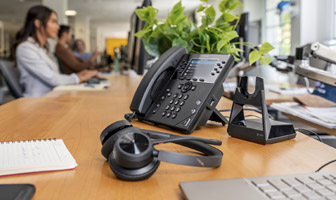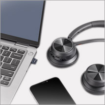 WHETHER YOU'RE WORKING FROM HOME, IN THE OFFICE OR IN HYBRID MODE, THE NEW POLY VOYAGER 4300 MEETS ALL YOUR NEEDS.