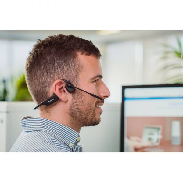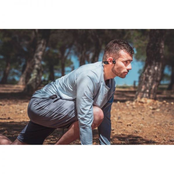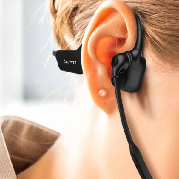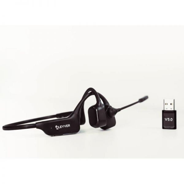The bone conduction design of this new Cleyver Open ear UC model allows users to enjoy exceptional comfort without losing sight of their surroundings, as this patented technology does not overload the user's ears for sound transmission. The wireless headphones emit sound vibrations through the user's cheekbones, allowing sound to reach their ears directly without passing through the eardrum. The Open ear earphones' light weight of 40 g ensures that you can wear them comfortably without experiencing any irritation.