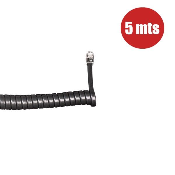Product description This Coiled Telephone Handset Cord 5m (Black) is for use with telephones with RJ11 ports. You can buy the corded telephone handset cord as a replacement or a new accessory.