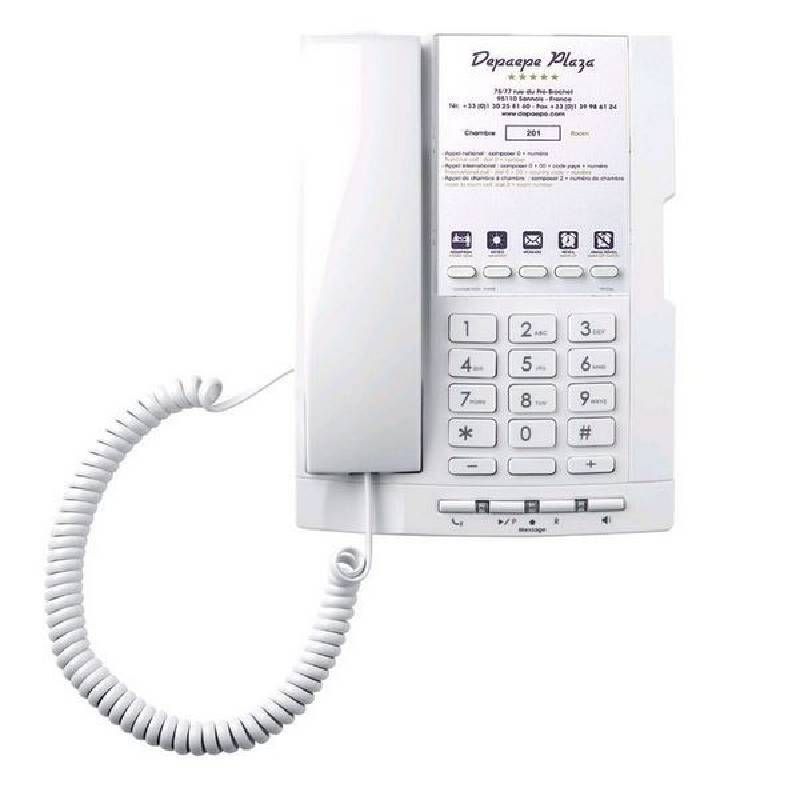 With pictograms and captions , you can customize the keys to direct access to services. The Premium Hotel 5 wired phone is equipped with 5 direct access memory keys . At the push of a button, you call your 5 regular contacts.