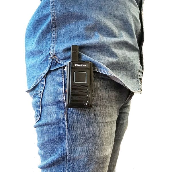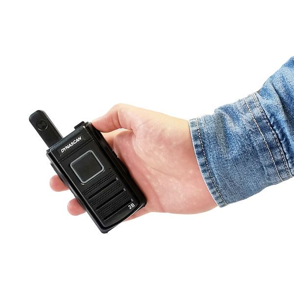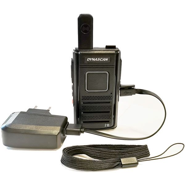 Dynascan 2B is a PMR446 free-to-use walkie-talkie with scrambler and 0.5W output power. It has scan function for its 16 channels and VOX function for hands-free talking. It has a monitor and voice command prompt. Also battery saver, low battery alert and busy channel lock feature.