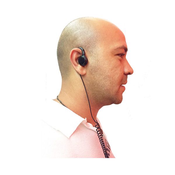 This G-shaped Earpiece for radios, compatible with Vertex, Dynascan and Yaesu Walkie-Talkies, is a comfortable, hygienic earpiece that sits just next to the ear.