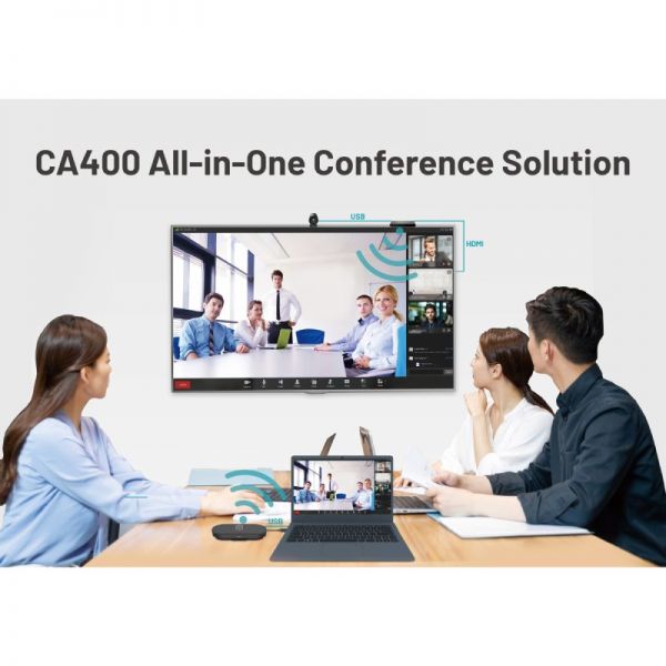 Designed for small and medium-sized conference rooms up to 32 square metres, the CA400 system consists of a unique MS10 speakerphone that supports wireless screen sharing, an RC10 receiver and a CM70 USB camera. The CA400 achieves far-field voice pick-up and delivers crystal clear HD sound. Participants can also broadcast wirelessly in 4K and access FHD video streaming.