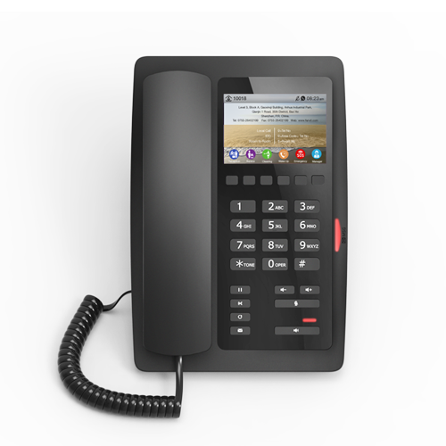 A stylish, professional IP phone by Fanvil, perfect for any hotel. Equipped with a neat 3.5" LCD screen, 6 programmable soft keys and HD audio, the Fanvil H5 is an easy-to-use, high-quality device presented at a relatively low price.