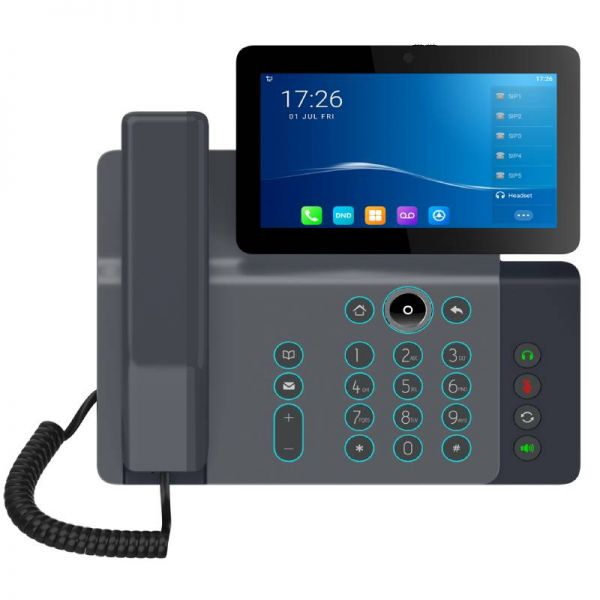 A new range in the office telephone category, the Fanvil V series brings intelligence to your telephone exchanges. The V67, a superior top-of-the-range system, is the first SIP model to enable HD video calls to be made via a telephone set. The perfect combination of an elegant, contemporary exterior and an ultra-high-performance interior, the V67 offers a more intuitive user experience than ever before. In fact, the combination of the 7" colour LCD touch screen and the multiple function keys on it means that every member of staff can navigate seamlessly between menus, and check incoming events at a glance.