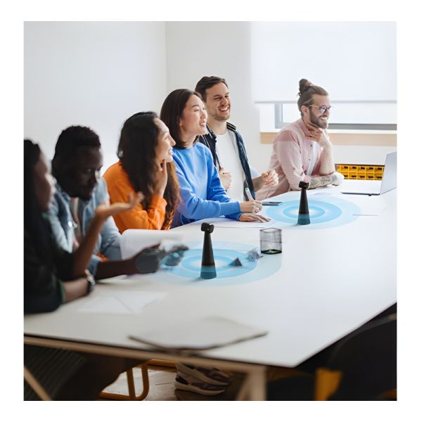 The DUET delivers rich, balanced sound through its 5W speaker and two omnidirectional microphones. AI-powered noise suppression and echo cancellation keep your voice clear, even in noisy environments. Thanks to full-duplex technology, everyone can speak naturally without talking over each other.