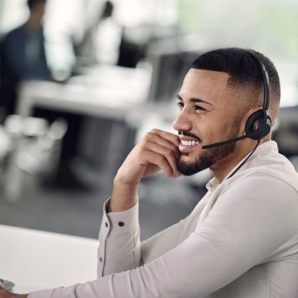 Comfort is a major focus for the concentration of your workers. The Jabra Engage 40 Inline Link USB-C Stereo is no slouch in this respect, offering total comfort thanks to its angled leather ear cushions that provide a perfect fit, plus an ultra-low weight of just 63 grams. It also features an innovative labyrinth pattern inside each ear cup that relieves pressure while fitting snugly in the ear. These headphones feature ambient noise cancellation so that the user wearing these headphones can forget about background noise and focus on their work with greater ease and less stress, clearly helping their concentration and improving their performance. Colleagues won't disturb you while you're on a call thanks to the built-in busy light that alerts others.