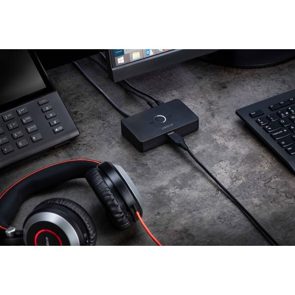 The Jabra Link 950 helps improve productivity by allowing you to use a USB headset only with a landline or with a landline and softphone. Choose from our wide range of wired and wireless headsets and look for Bluetooth® functionality if you also want the headset to be able to connect with a mobile phone.