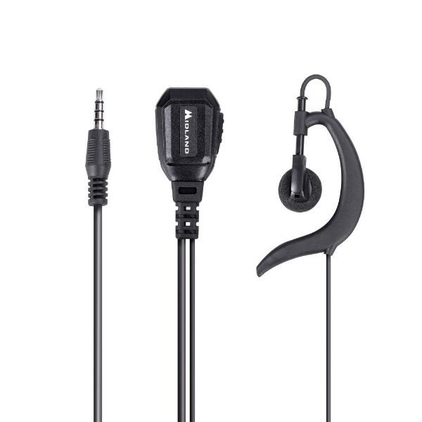 Midland MA21-777PRO curly headset microphone ideal for use with the Midland 777PRO walkie-talkie. The headset mic has a switch to use VOX or PTT on your two-way radio.