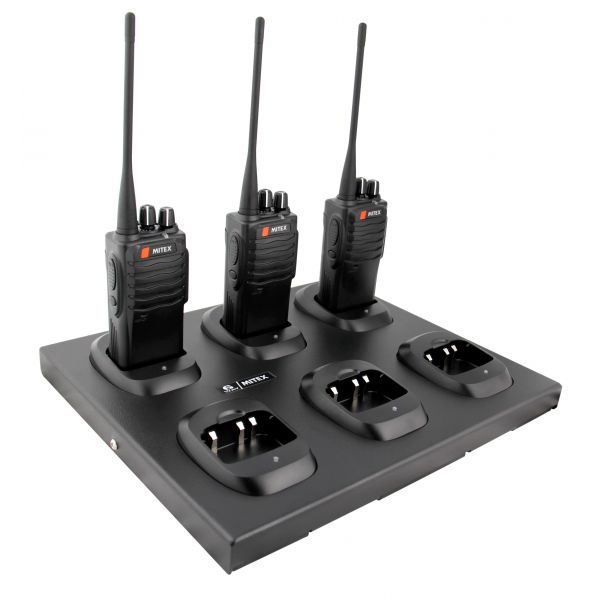The Mitex Site 6-way charger can charge up to 6 radios simultaneously.