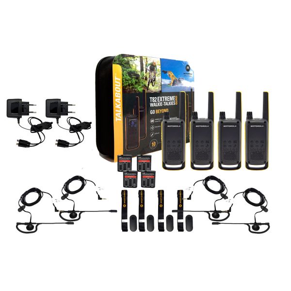 The T82 Extreme, the new walkie-talkie offered by Motorola, is a reliable and robust communication medium designed for use in the most extreme environments. Operating via the PMR446 frequency, this talkie is a so-called "unlicensed" product, allowing customers to communicate easily and free of charge via 16 channels and 121 sub-channels. Dedicated to both professionals and outdoor enthusiasts, this device is available in duo version with a pair of walkie-talkies, or in quad version, with 4 products included, all with the aim of meeting the needs of as many users as possible.