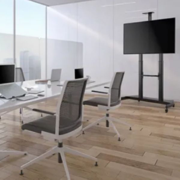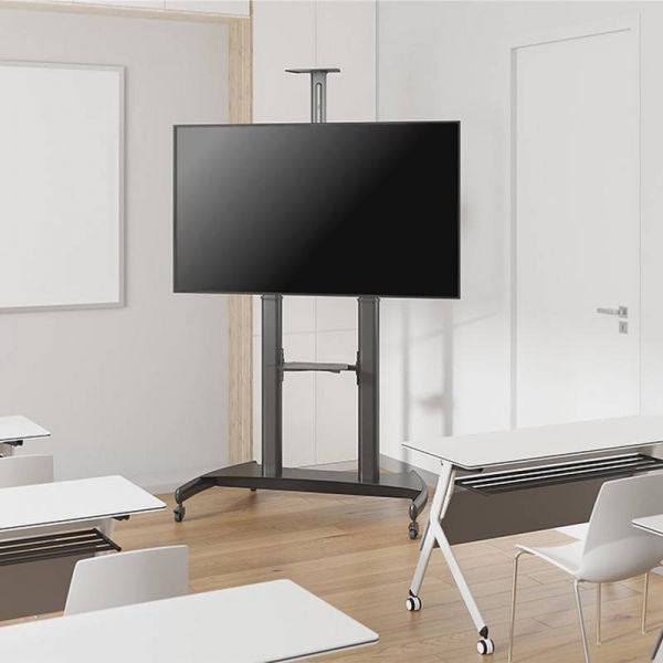 Finally, this mobile stand supports a maximum load of 100 kg, and is suitable for screens meeting VESA standards ranging from 200 x 200 mm to 1000 x 600 mm.