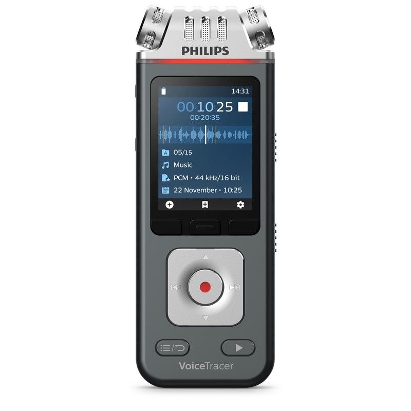 The Philips Voice Tracer DVT 6110 features exceptional recording quality for optimal reproduction of every sound pulse and a powerful speaker for pleasant and faithful listening. It is ideal for recording music in the studio, at a concert, or a distance recital with its directional microphone. With its high-quality microphone suspension, it avoids picking up unwanted noise and can pick up both soft and loud sounds.