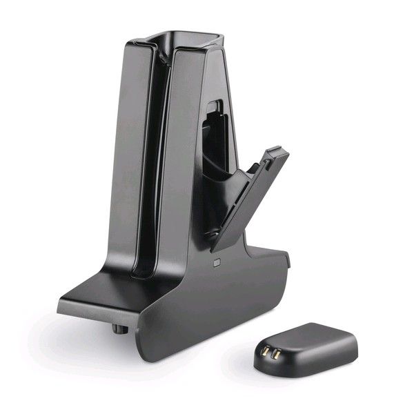 Charge cradle with hot swappable battery for Savi W440 and W740 cordless headsets.