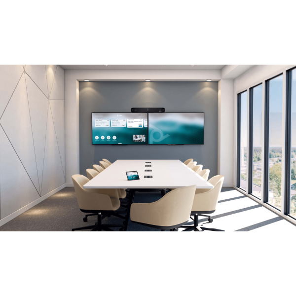 Studio X70 brought to you by Poly is a stand-alone video conferencing solution that works directly through a cloud platform. You don't need your computer to start a video conference, as this video bar integrates directly with a PC and all common collaboration platforms. Setting up this camera will only take a few minutes. Simply connect the Poly Studio X70 bar to your broadcast monitor via HDMI and connect it to your network via an RJ45 connector.