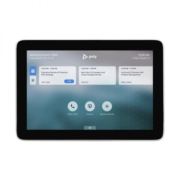 To start a meeting, all you have to do is connect through the Poly Studio TC8, a powerful control tablet dedicated to the simplified management of virtual meetings. From it you can also start your Microsoft Teams, Zoom... session. It is an 8'' touch tablet with HD resolution that allows you to create meetings and manage them in a simplified way.