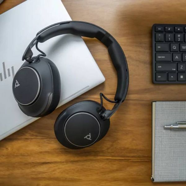 Wear the Voyager Surround 80 UC all day without any discomfort. You’ll barely notice you're wearing it, thanks to the ultra-soft carbon fibre ear cushions and the adjustable headband with ergonomic spacing for a truly comfortable fit. That way, you can stay focused on what really matters.
