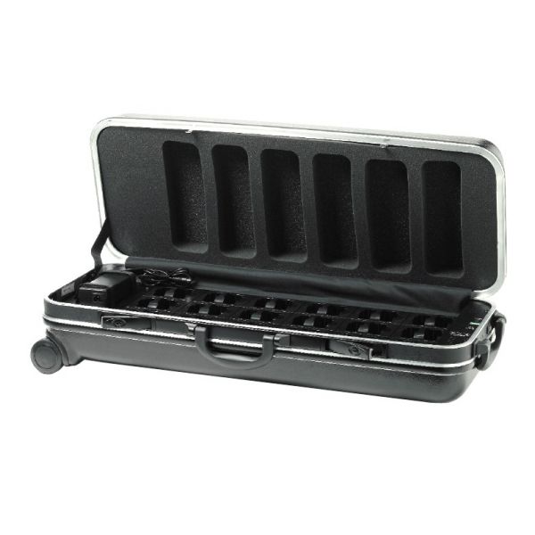 The Rondson HDC-736 is an easily transportable charging case due to its incorporated wheels. Inside are 36 integrated charging compartments which are compatible with the transmitters and receivers of the WT-808 series (WT-808T / WT-808R). The HDC-736 simultaneously feeds all 36 components and takes 5-6 hours to fully charge the units. The built in LED screen on the case allows you to view the condition of each battery meaning that you should never be caught short!