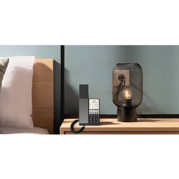The HD350A has an antibacterial casing to meet high hygiene standards in hospitality. The customisable front panel allows you to match your hotel’s branding. The handset is hearing aid compatible (HAC), and flexible mounting options (desk or wall) make it suitable for different setups.