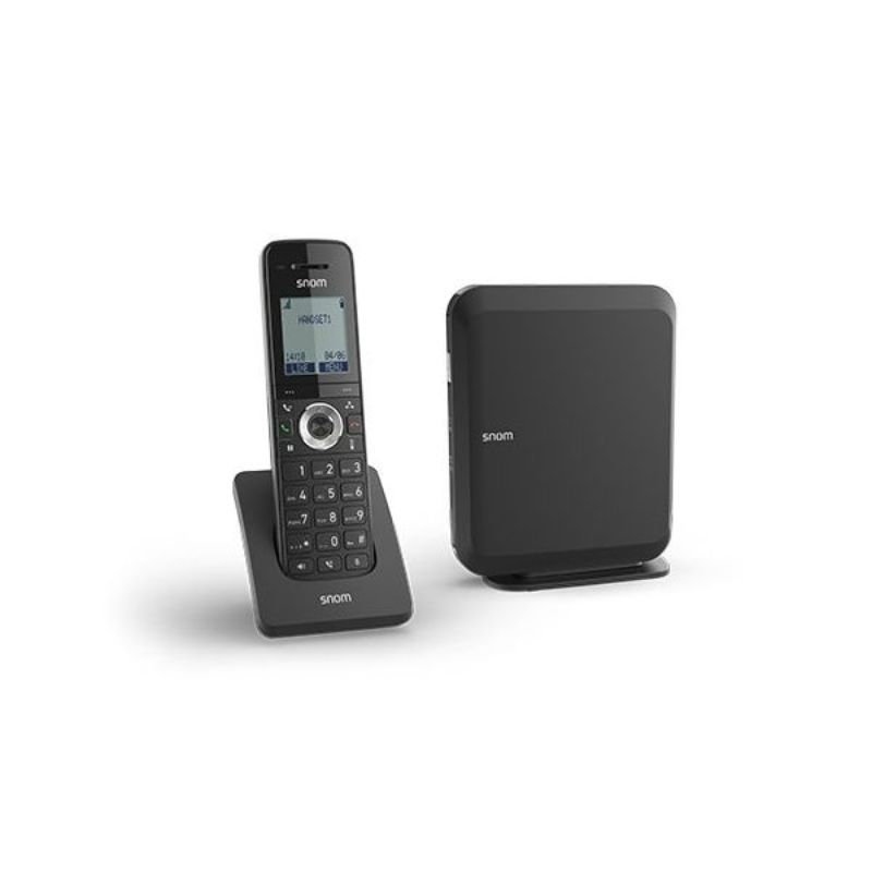 The large capacity of the M200 SC base station allows up to six single-cell (SC) Snom cordless telephones to be connected to it . In addition, the M200 SC supports up to six different SIP identities and four simultaneous calls. To make the integration as simple as possible, the M200 base station can work simply through Ethernet (PoE).