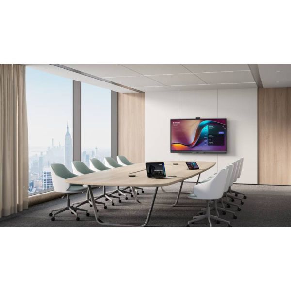 Works natively with Microsoft Teams Rooms and is compatible with Zoom. It runs on Android 13 and includes an optional OPS slot for Windows systems. You can also share content wirelessly using WPP.