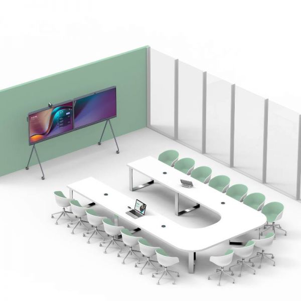 The ETV86 extended touch display seamlessly integrates with the Yealink MeetingBoard 86'', forming a versatile dual-screen solution for interactive content experiences in video conferences.