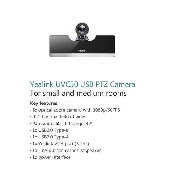 The MVC series delivers premium audio and video quality thanks to its Yealink audio devices and UVC series of optical PTZ cameras. Indeed, UVC50 is Yealink’s next-generation camera that supports 1080P/60FPS video calls to make your business discussion be as life-like and interactive as possible. For its premium voice quality, the solution is combined with the Yealink audio algorithm and is equipped with two microphones that supports 360-degree voice pickup range at a radius of up to 10 feet and a speaker that is capable of producing louder output up to 40W.