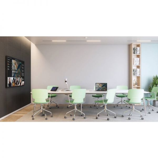 Every detail of the medium-sized boardroom is plainly visible thanks to a top-of-the-range 10k camera. Unparalleled 360° panoramic view so that every position in the medium-sized conference room is clearly visible. The room's four corners are covered by the 6m sound pickup range.
