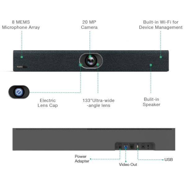 The Yealink UVC40 is ideal for video conferencing in the home or office. This device enables multiple users to join a meeting from different locations while maintaining crystal clear image and sound quality. The UVC40 has a 4K camera with a wide-angle lens and 12x digital zoom, allowing you to see the entire room clearly. It also includes a high-performance microphone to capture everyone's voice and a built-in speaker to deliver high-quality audio. The UVC40 also has a variety of connectivity options, allowing you to connect to a wide range of audio and video sources. You can easily navigate through different settings with its intuitive user interface to find the ideal setup for your meeting.Experience the convenience and quality of the Yealink UVC40 and make video conferencing a seamless part of your daily routine.
