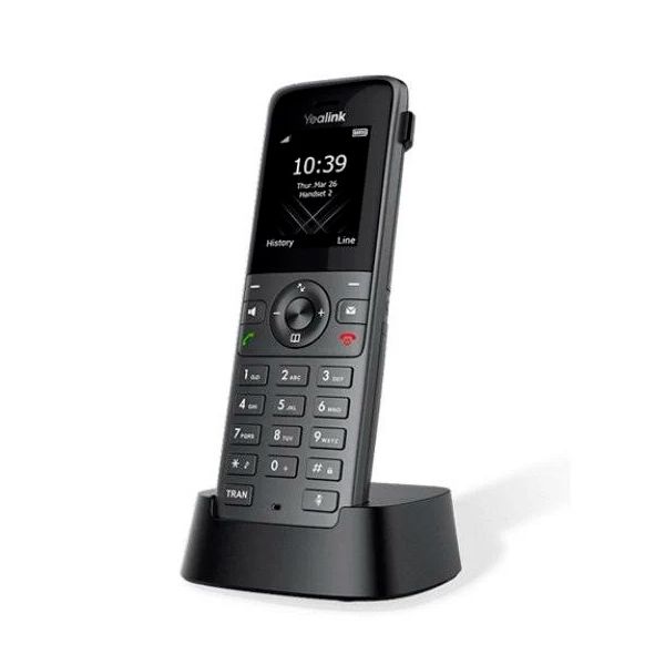 The Yealink W73H is an extension telephone for Yealink W73P, extension terminal with charging base, mains connection and a compact and modern design. It only works if paired with a SIP base phone and perfectly compatible with Yealink W70B up to 10 handsets connected to the base.