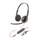 The Blackwire 5220 wired model stands out today thanks to its versatile connectivity: you can choose between USB-A, USB-C and Jack! In other words, it connects to both your computers and your mobile devices. With its two faux leather ear cups and padded headband, it offers maximum everyday comfort! Whether you're at the office or at home, you can count on the noise-cancelling microphone and dynamic equaliser! Together, they reduce background noise and digitally optimise your voice during calls so that it is always transmitted clearly.