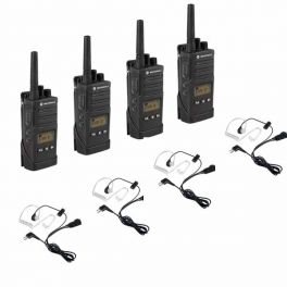 Quad pack two-way radio with added subscriptions IP54 protection rating: able to withstand harsh conditions Nationwide PTT (Push to Talk) One button for large-scale collaboration Location tracking Wi-Fi connectivity Battery life: 18 hours Includes 4 1-year subscriptions